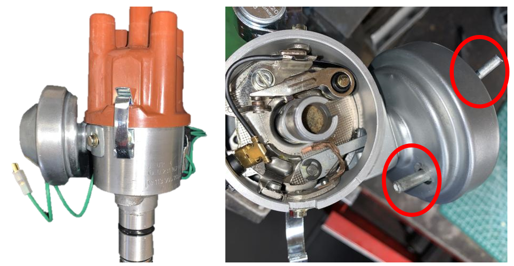 Volkswagen Beetle’ın ilk modellerinde kullanılan distribütörlerden biri vakumlu distribütörlerdir. Bu tip distribütörler, motor yüküne göre vakum basıncı yardımıyla ateşleme avansını ayarlar. Motor yükü değiştikçe, distribütördeki vakum ünitesi avansı artırarak veya azaltarak motorun farklı yükler altında ideal çalışmasını sağlar.